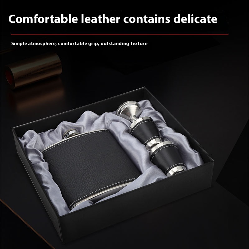 Natural Black Stainless Steel Wine Bottle Leather Gift Personality Small Wine Cup Men's304 Wine Bottle Set