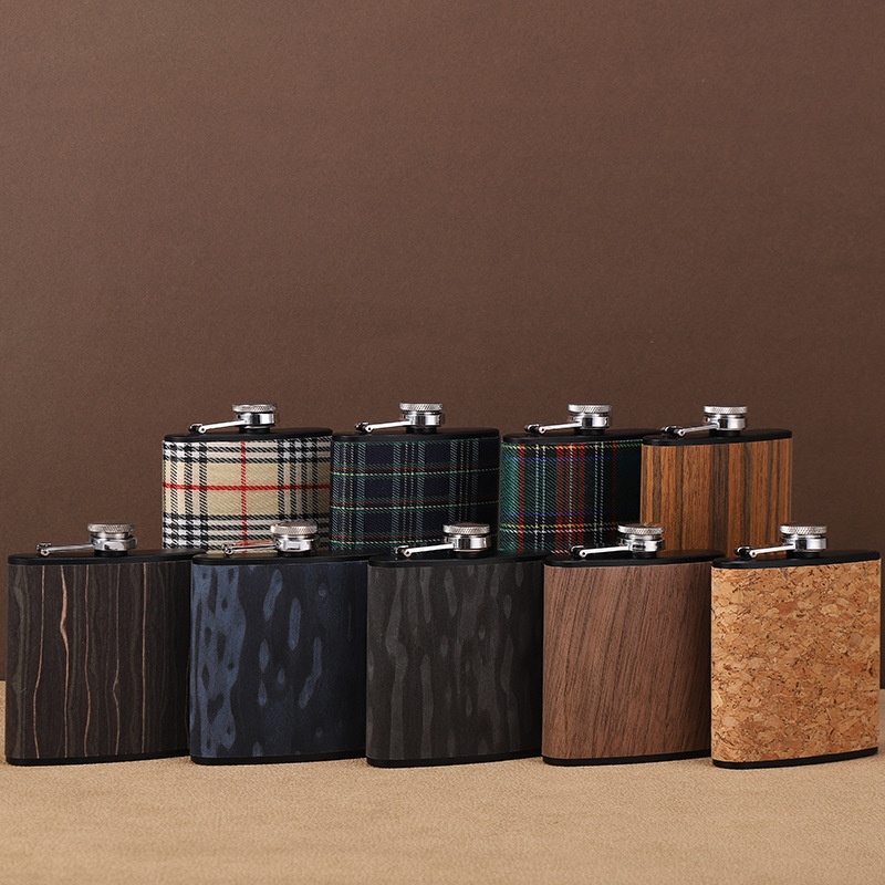 6 Ounces Stainless Steel Wine Flask304 Material Light Luxury Wood Grain Leather Outdoor Convenient Portable Small Wine Set