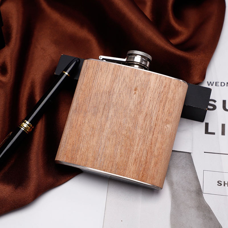 Wooden Stainless Steel Wine Flask Retro Style Real Wood Grain Bamboo Bag Wine Flask Size Portable Full Specifications