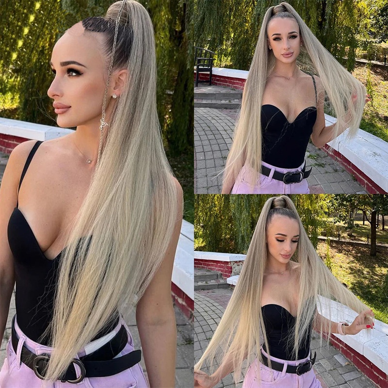 European And American Foreign Trade Wig Ponytail Female Long Straight Hair Chemical Fiber Hair Wig Ponytail Rubber Band Style