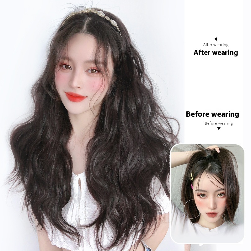 Wigs For Women European And American Long Curly Hair Female Headpiece E-commerce Wigs Water Ripple Hair Detachable Headband Half Headpiece