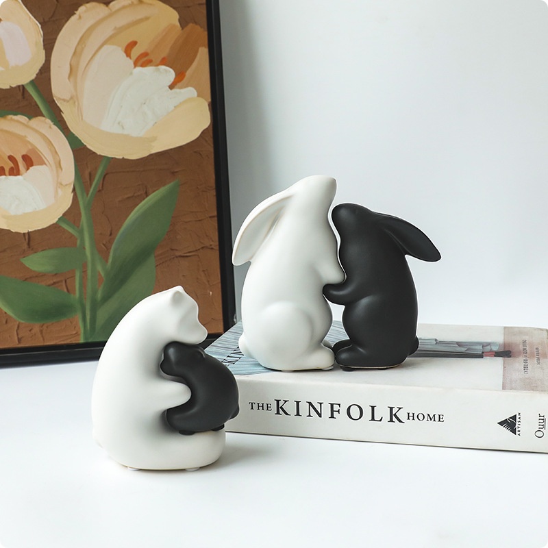 Nordic Light Luxury Hug Bear Rabbit Living Room Bookshelf Bedroom Bedside Porch Ornaments Soft Decoration Desktop Model Room