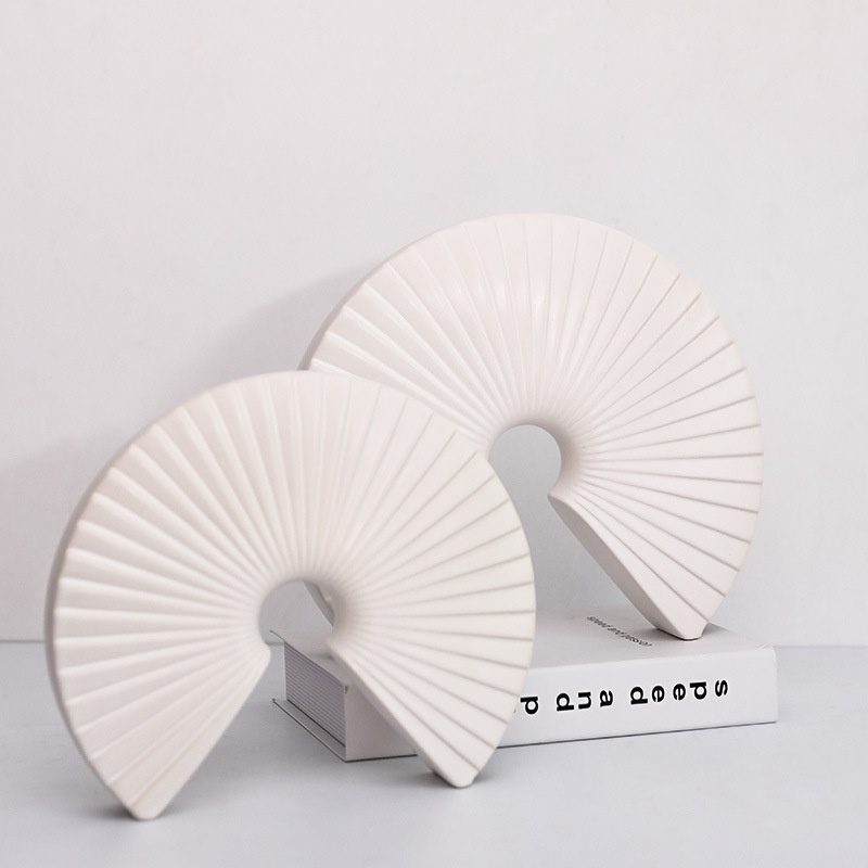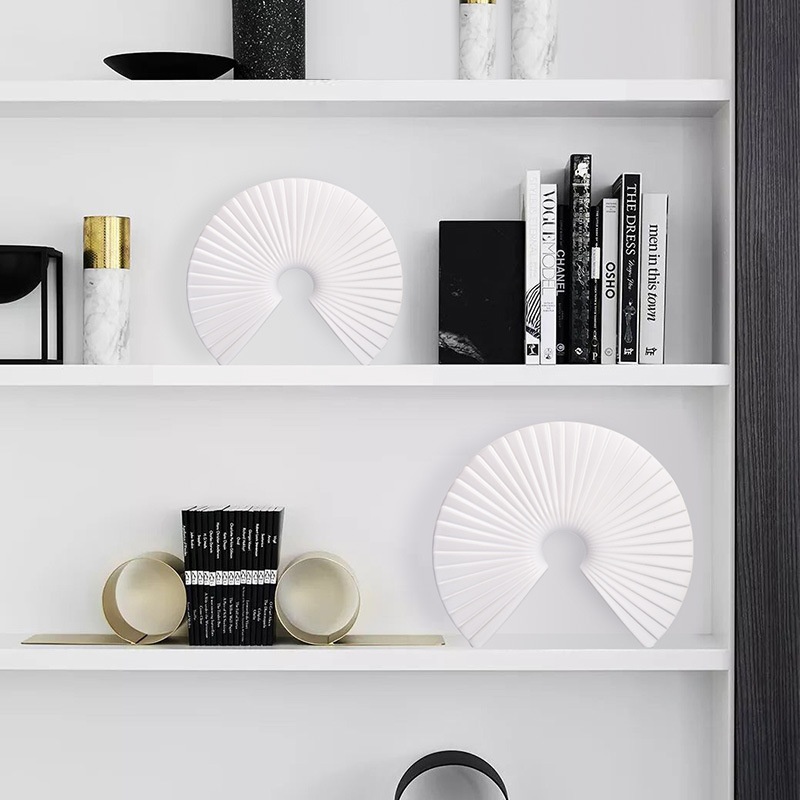 Chinese Style Modern Simple White Fan-shaped Ornaments Model House Sales Office Soft Decoration Creative Crafts Decoration