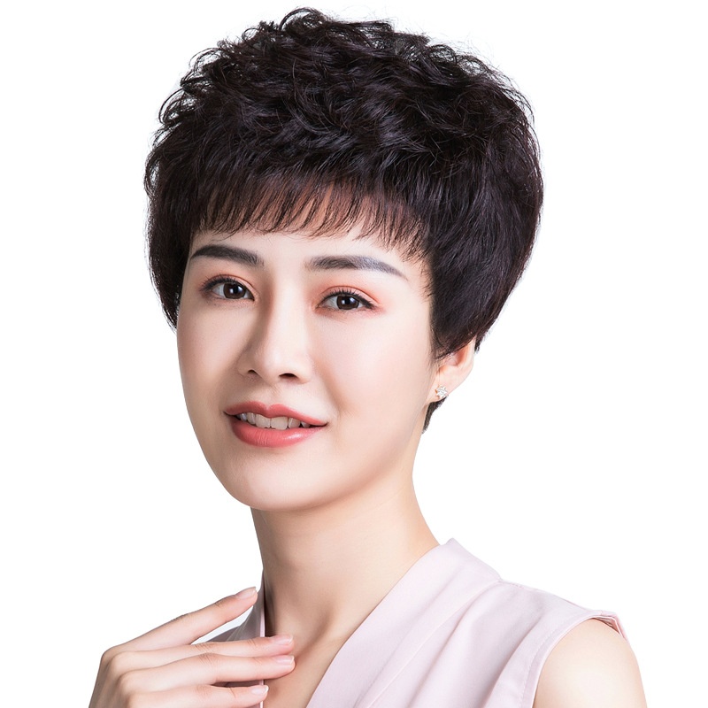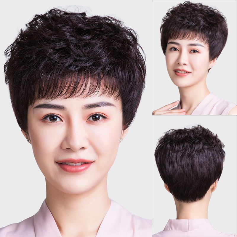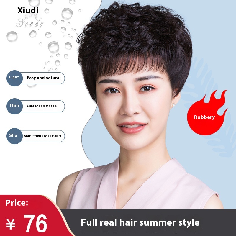 Wig Female Short Hair Middle-aged And Elderly Real Hair Wig Set Natural Short Curly Hair Mother Real Hair Fashion Full Head Cover Style