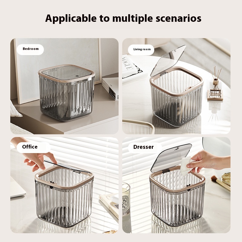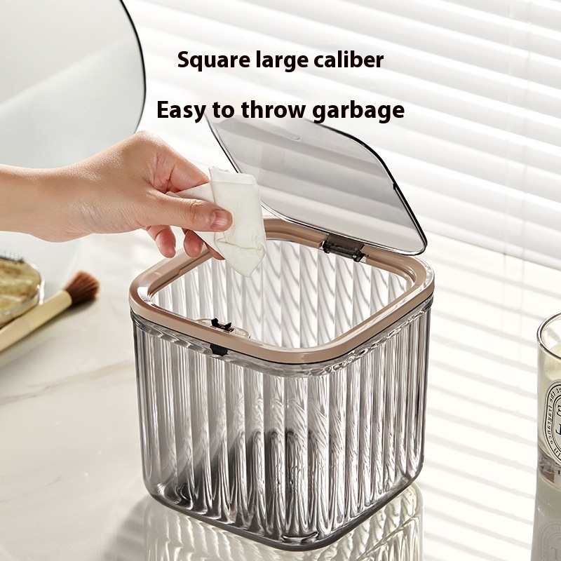 [Hedou C]Desktop Trash Can Dining Table Desk Dressing Table Trash Can Household With Lid Pressure Ring Mini Wastebasket