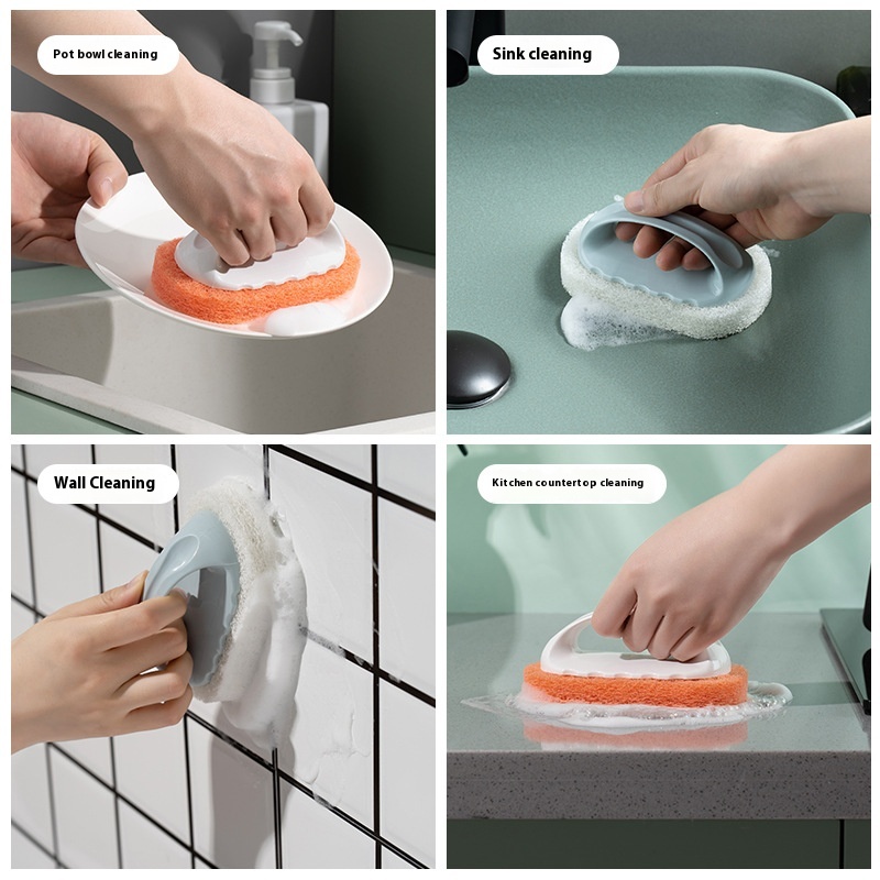 【Hedou】Bathroom Long Handle Sponge Brush Cleaning Brush Bathtub Sponge Brush Floor Tile Brush Scouring Pad