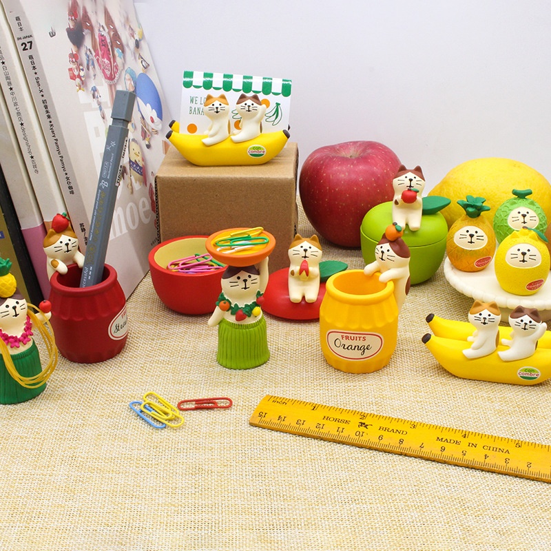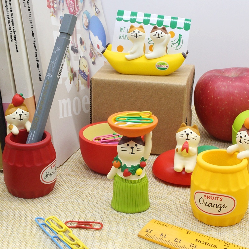 Japanese Groceries Zakka Fruit Cat Message Clip Lipstick Stamp Storage Pen Holder Graduation Season Gift Small Ornaments