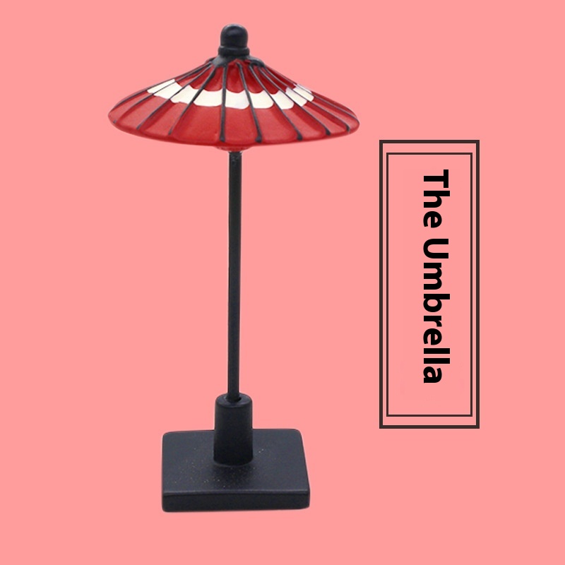 Japanese Style Cherry Blossom Viewing Tea Party Red And White Checkered Umbrella Doll House Miniature Scene Resin Small Ornaments Clay Figure Props