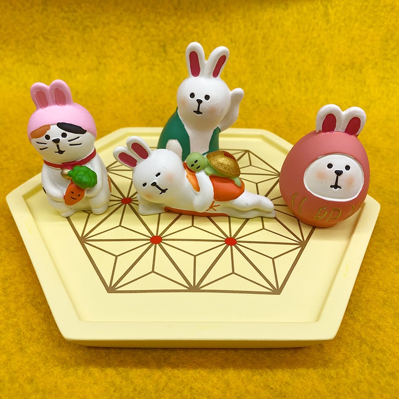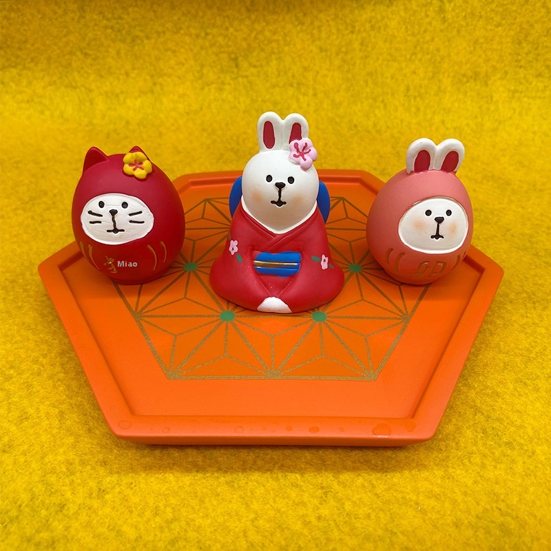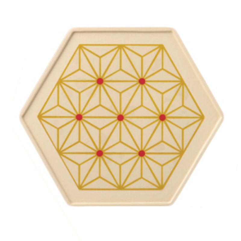 ZAKKAJapanese Sundries Vermilion Beige Hexagonal Base Tray Miniature Shooting Props Doll House Decoration Ornaments