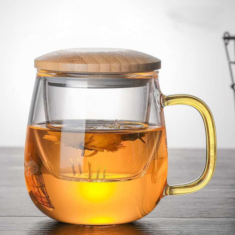 Glass Tea Cup With Wooden Lid And Tea Water Separation Thick Transparent Water Cup High Borosilicate Heat-resistant Glass Cup