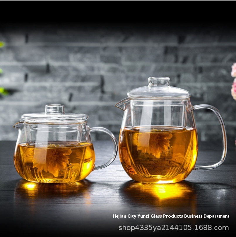 Thickened Glass Teapot Heat-resistant Vertical Pattern Teapot Penguin Teapot Chinese Style Pot Glass Liner Teapot Tea Set