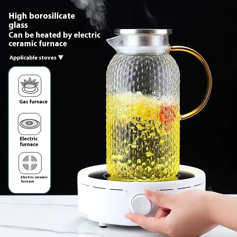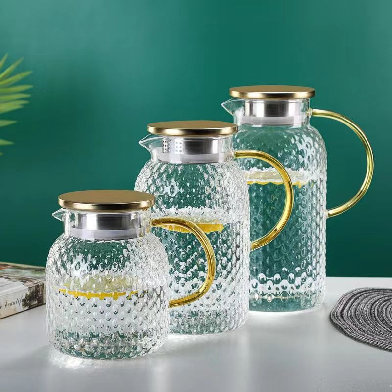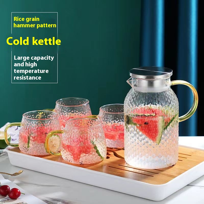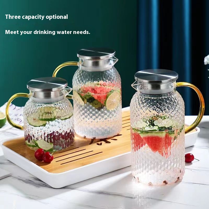 Large Capacity Hammered Texture Rice Grain Glass Water Pitcher,High-Temperature Resistant,Aesthetic Design,Household Cold Water And Tea Pitcher