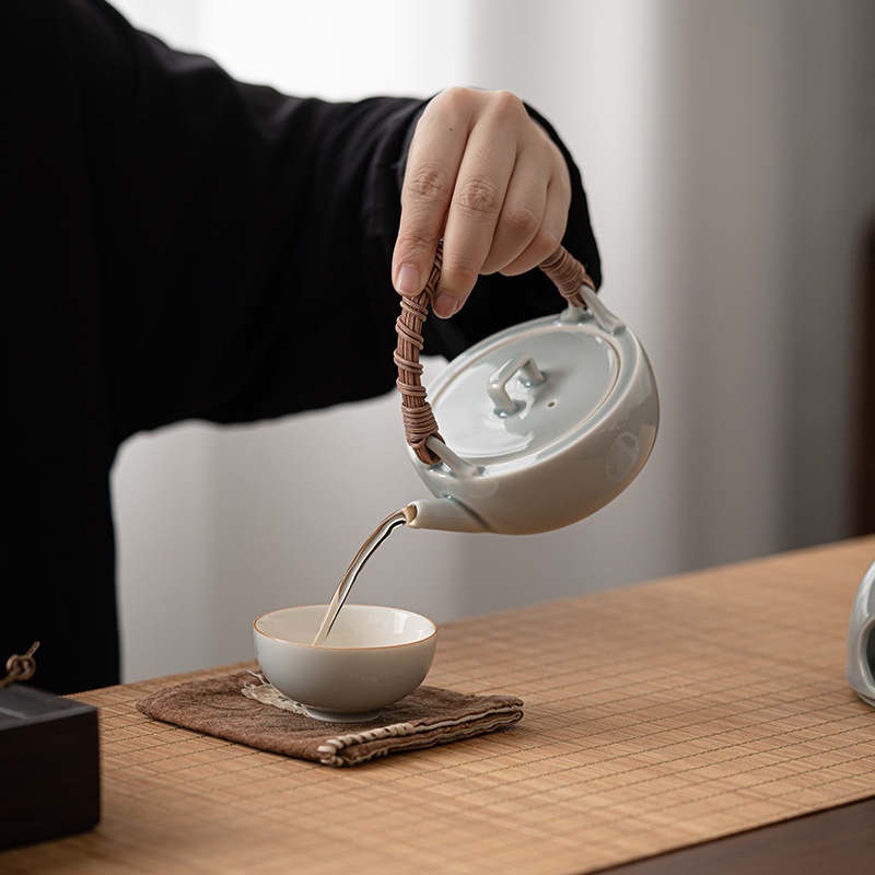 Ice Gray Glaze Japanese Style Warm Tea Stove Ceramic Warm Tea Stove Set Home Tea Making And Roasting Stove Handle Pot Anti-scalding Side Handle Pot