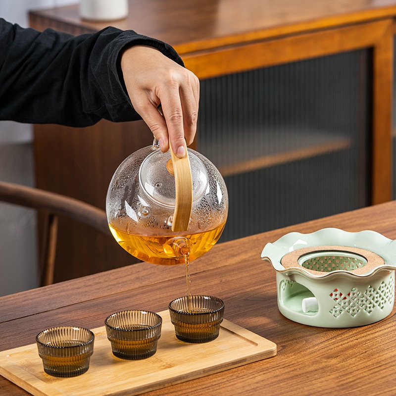 Ceramic Lace Tea Warmer Candle Tea Brewing Stove Flower Teapot Heatingulation Stove Teapot Nordic Base Tea Warmer