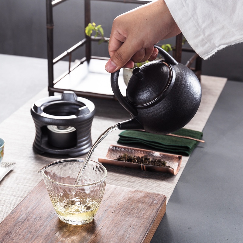 Stoare Rock Mud Side Handle Teapot Tea Maker Alcohol Lamp Teapot Puer Candle Handle Tea Warmer Ceramic Kung Fu Tea Set