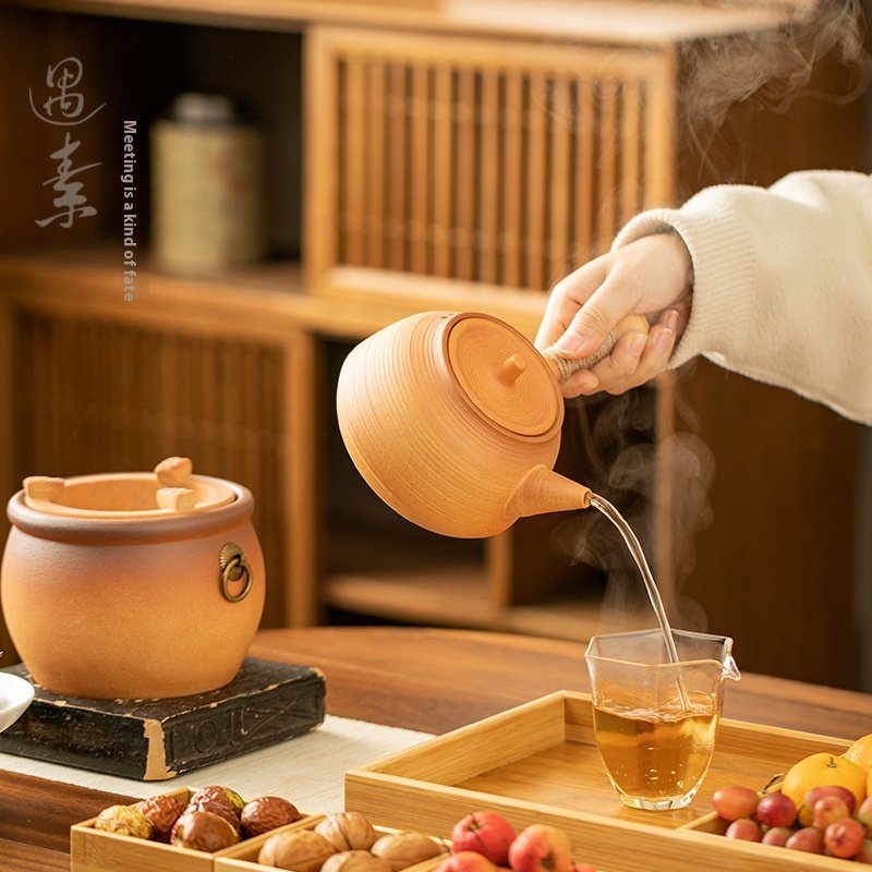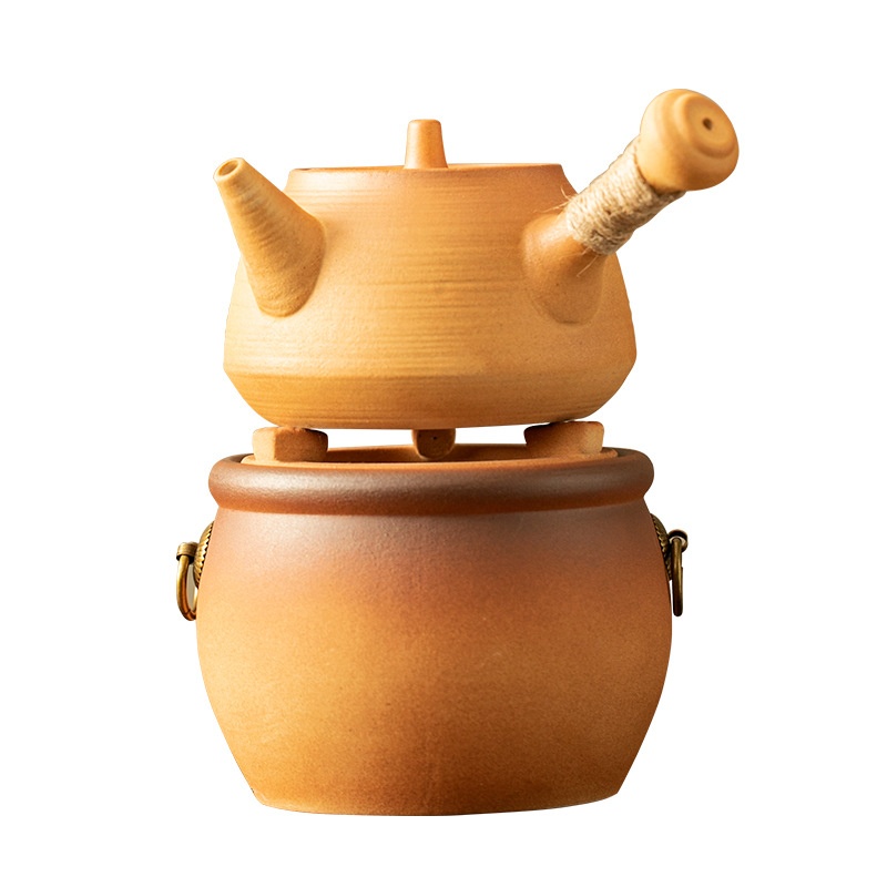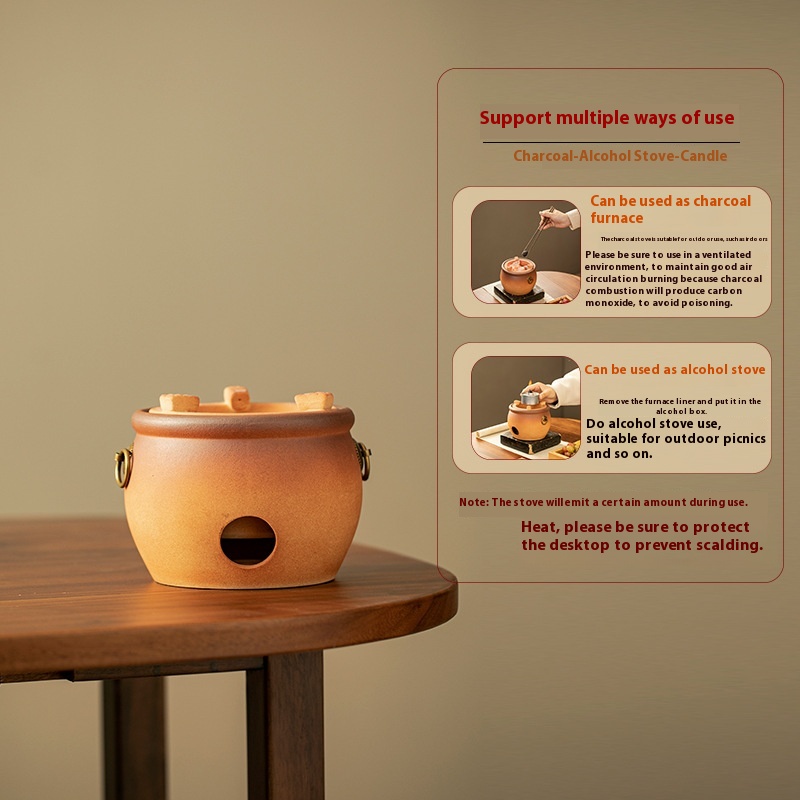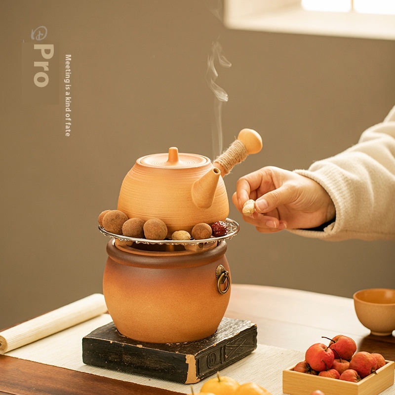 Stove-cooked Tea,Coarse Pottery Charcoal Stove,Dry-burned Ceramic Anti-scalding Handle Pot,Household Chinchilla Small Tea Stove,Warm Tea Maker