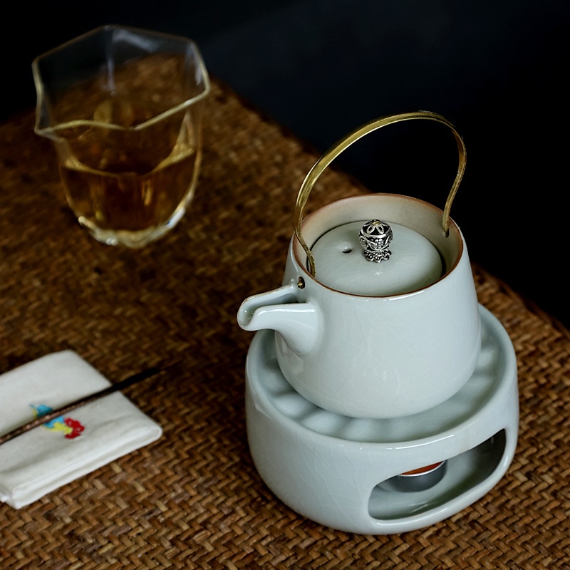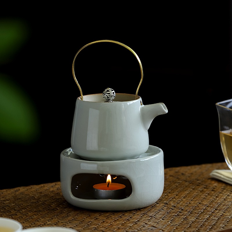 Stove-cooked Tea With Ceramic Handle Pot,Household Anti-scalding Teapot,Japanese Style Single Pot,Candle Heating Base,Warm Tea Stove Set
