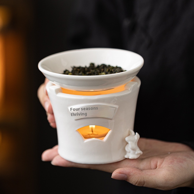 White Porcelain Tea Roasting Stove Japanese Style Household Tea Aroma Device Roasting Tea Indoor Tea Roasting Tea Frying Device Candle Heating Warm Tea Stove