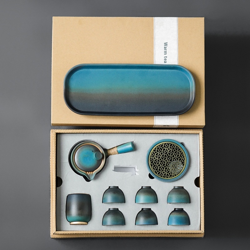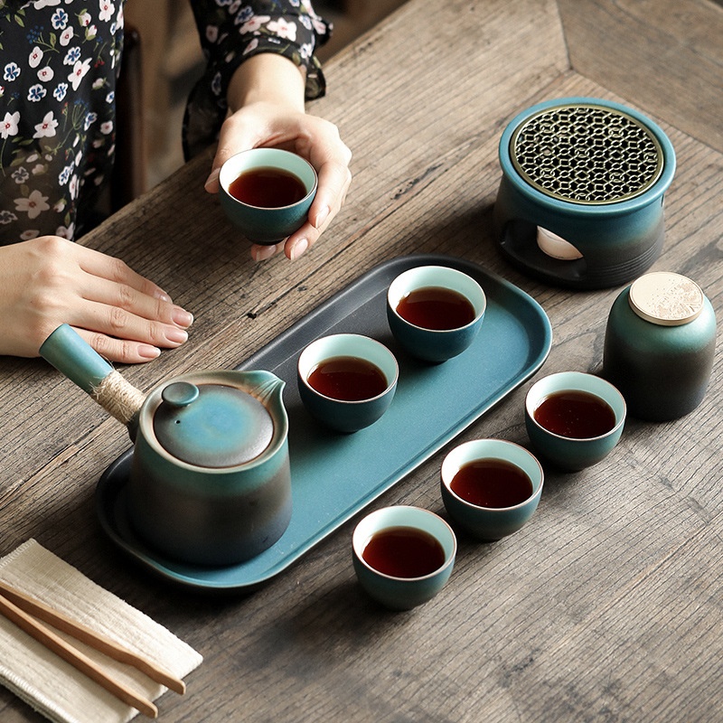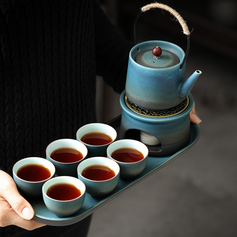 Tea Warmer Set Kung Fu Tea Set Household Simple Japanese Style Handle Pot Ceramic Tea Cup Tea Tray Complete Gift Set