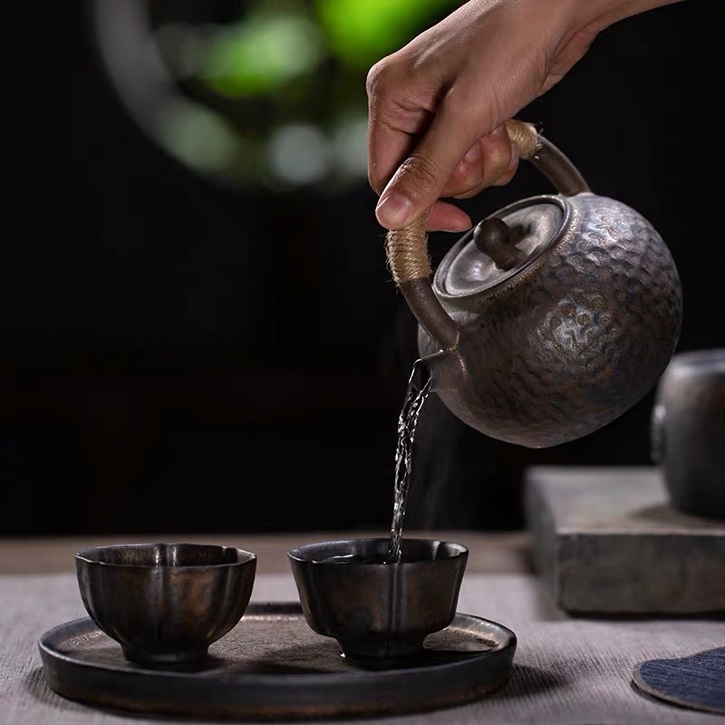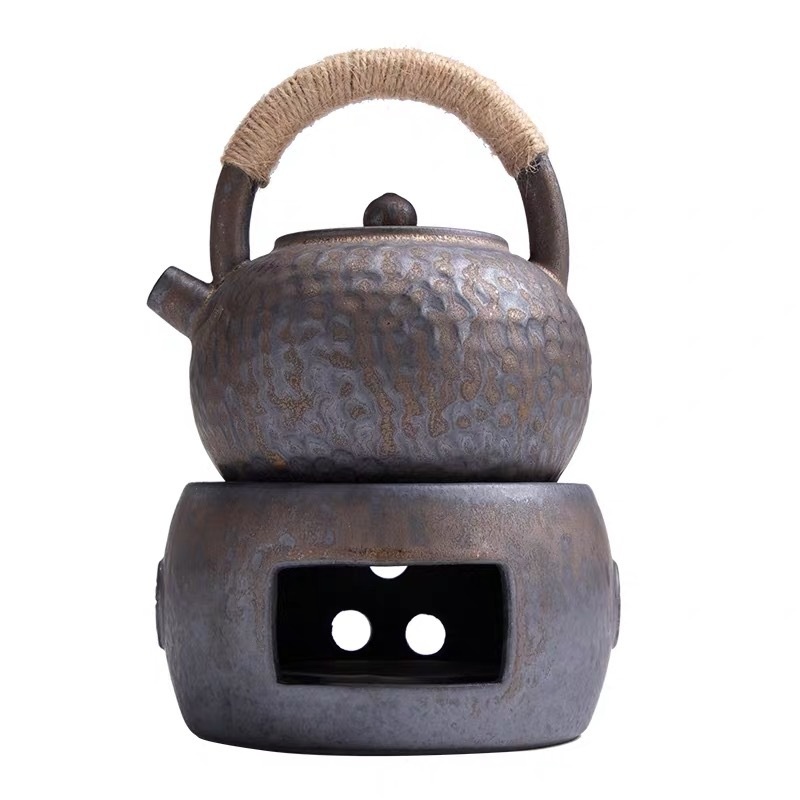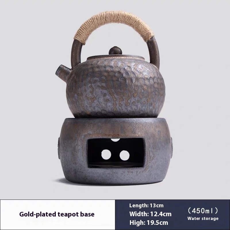 Retro Gilded Teapot Japanese Style Handle Pot With Tea Warmer Tea Stove Teapot Combination Home Teapot Kettle