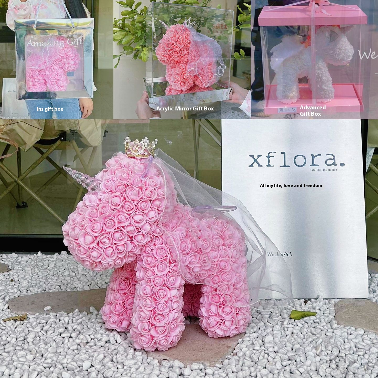 Preserved Flower Unicorn520 Valentine's Day Gift Creative Wedding Dress Rose Bear Preserved Flower Hydrangea Unicorn