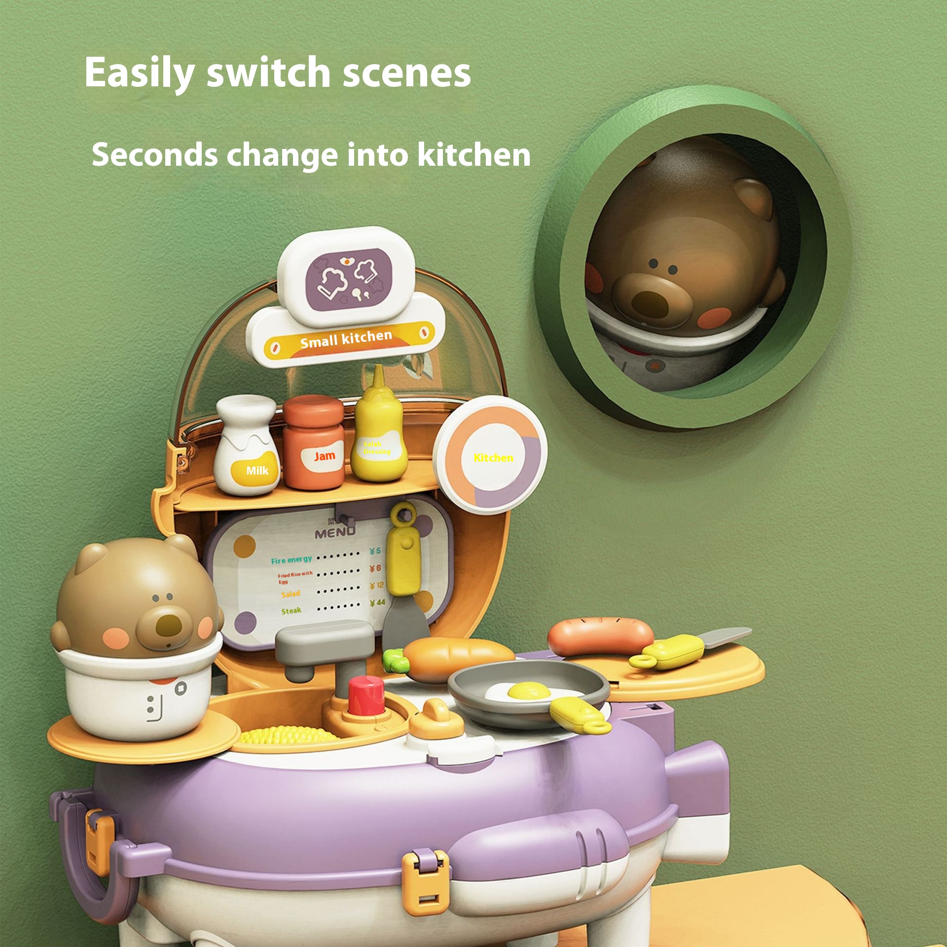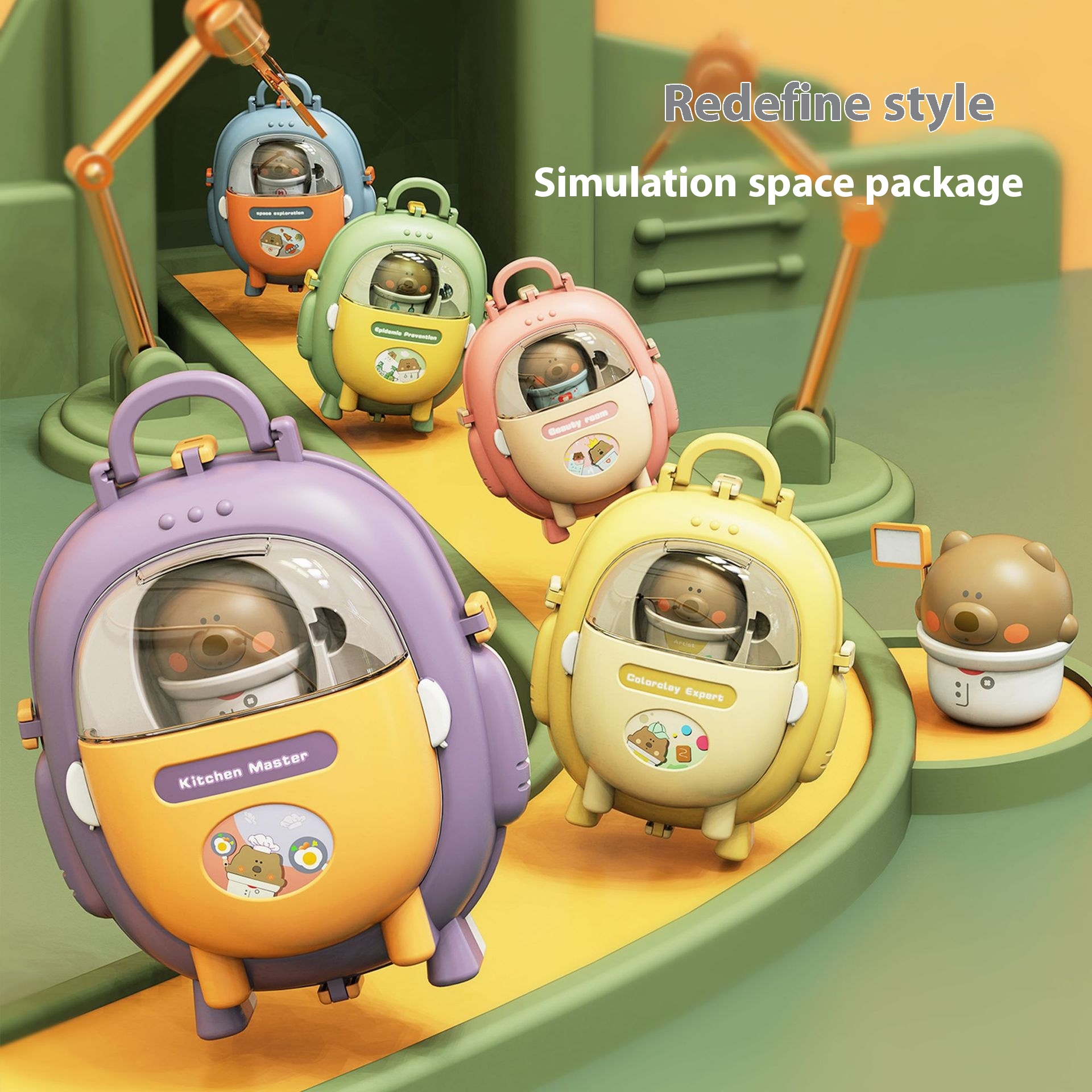 Fun Children's Play House Toys Simulation Space Bag Can Switch Color Clay Kitchen Cooking Bear Backpack