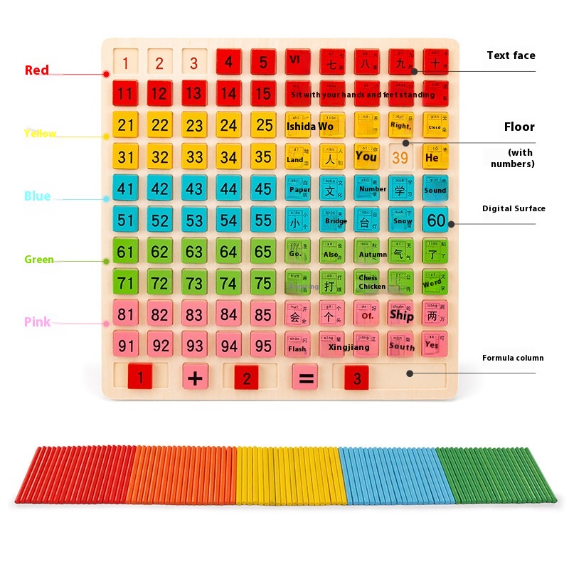 Children's Early Education Wooden Hundred Number Pair Board Learning Cognitive Building Blocks Educational Operation Addition And Subtraction Toys First Grade Teaching Aids