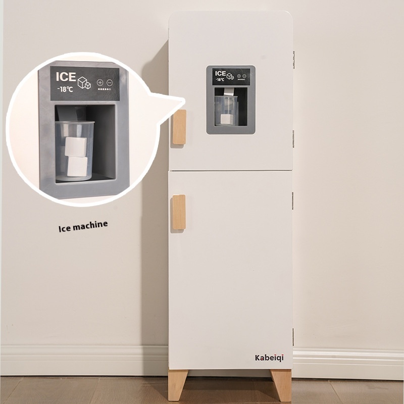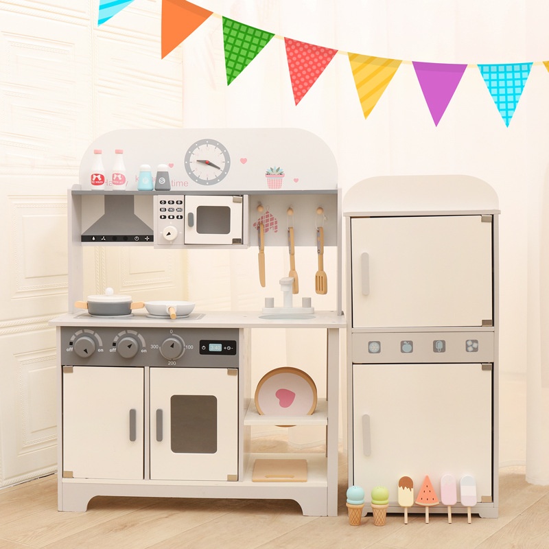 Wooden Simulation Danish Sound And Light Refrigerator Kitchen Toy Set Children's Play House Role Playing Educational Toys