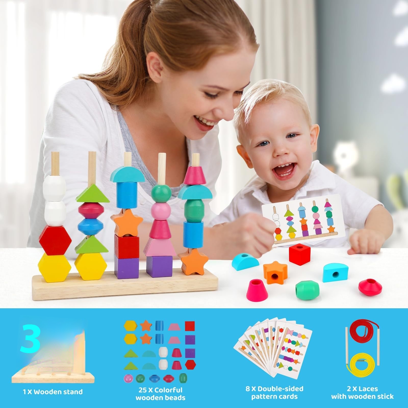 Children's Educational Beads Five Sets Of Column Color Sensory Enlightenment Children's Shape Perception Early Education Wooden Building Block Toys