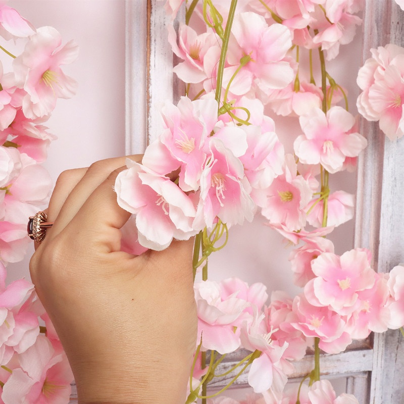 Cherry Blossom Vines Wrapped Around Air Conditioning Pipes Vines To Block Flower Trees Simulated Peach Blossoms Decorative Flower Vines Fake Flower Vines
