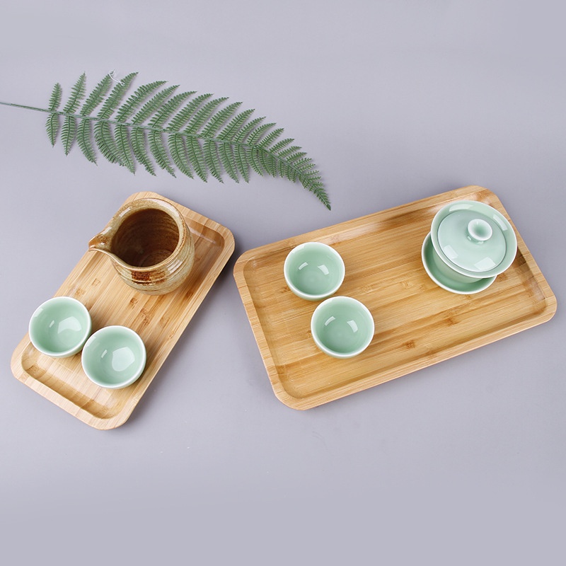 Direct Of All Bamboo Side-pressed Long Tray Tea Tray Rectangular Rounded Corner Household Multi-functional Dinner Tray Fruit Tray