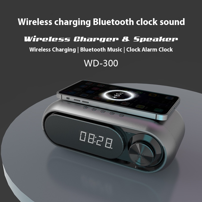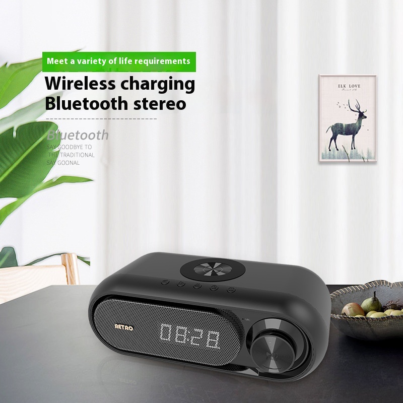 Retro Wireless Charging Bluetooth Speaker And Clock Alarm Three-in-one Bedside Wireless Charger
