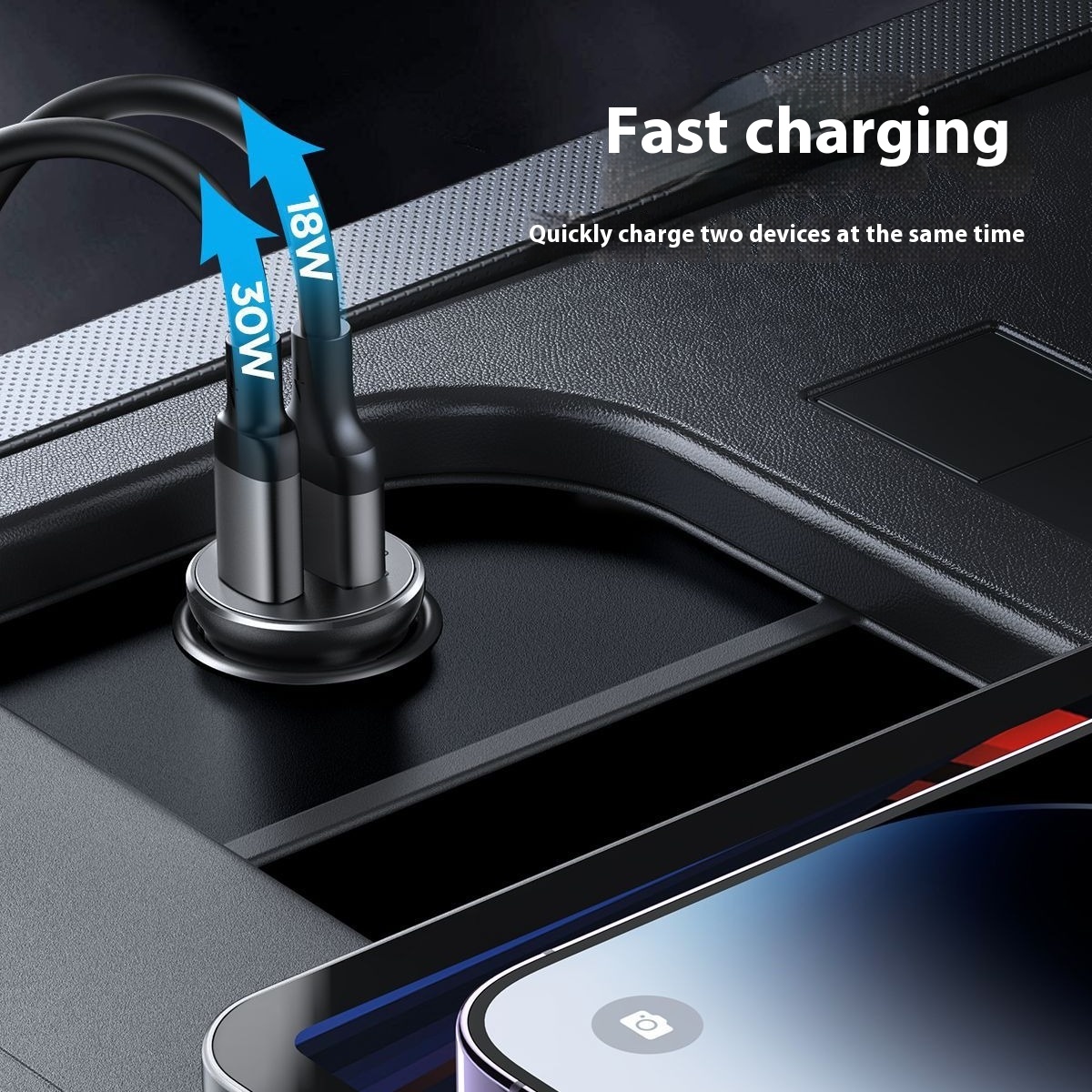30 WFast Charging Metal Mini Car Mobile Phone Charger PDDual Port Charger Sturdy And Durable QC3.0 Car