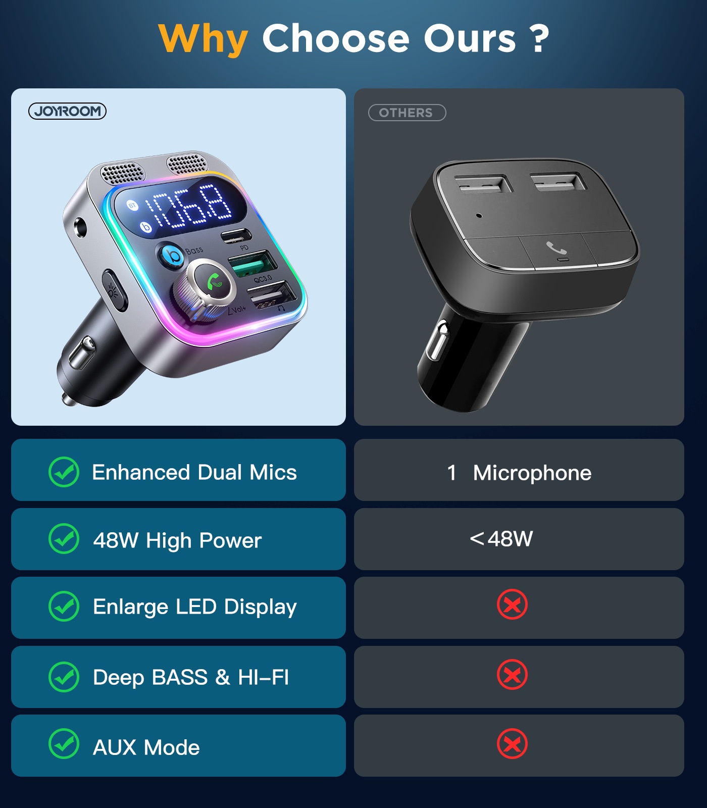 Jiletang48 WDual Microphone Car Bluetooth Transmitter Car Charger Car Charger12-24 VUniversal