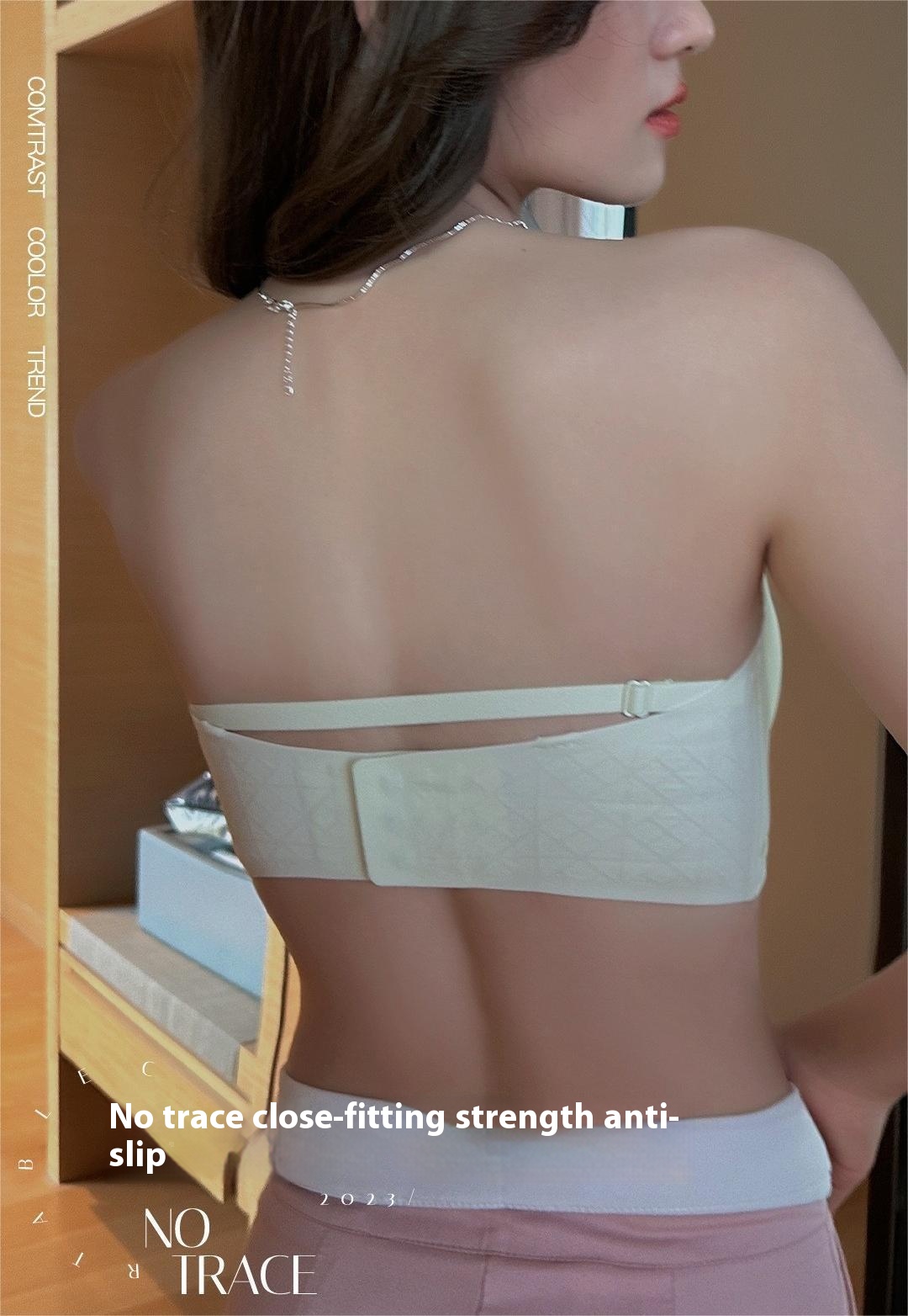 Left Seamless Three-dimensional Cup Small Chest Gathered Underwear Women's Non-slip And Anti-fall Sexy Beautiful Back One-piece Cup Strapless Bra