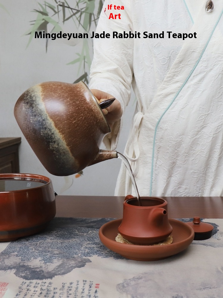 Mingde Garden Red Clay Sand Pot Water Boiling Teapot Electric Ceramic Stove Side Handle Tea Brewing Kiln-changed Pot Card Cover Jade Book Stewing Gongfu Tea Set
