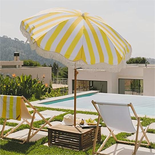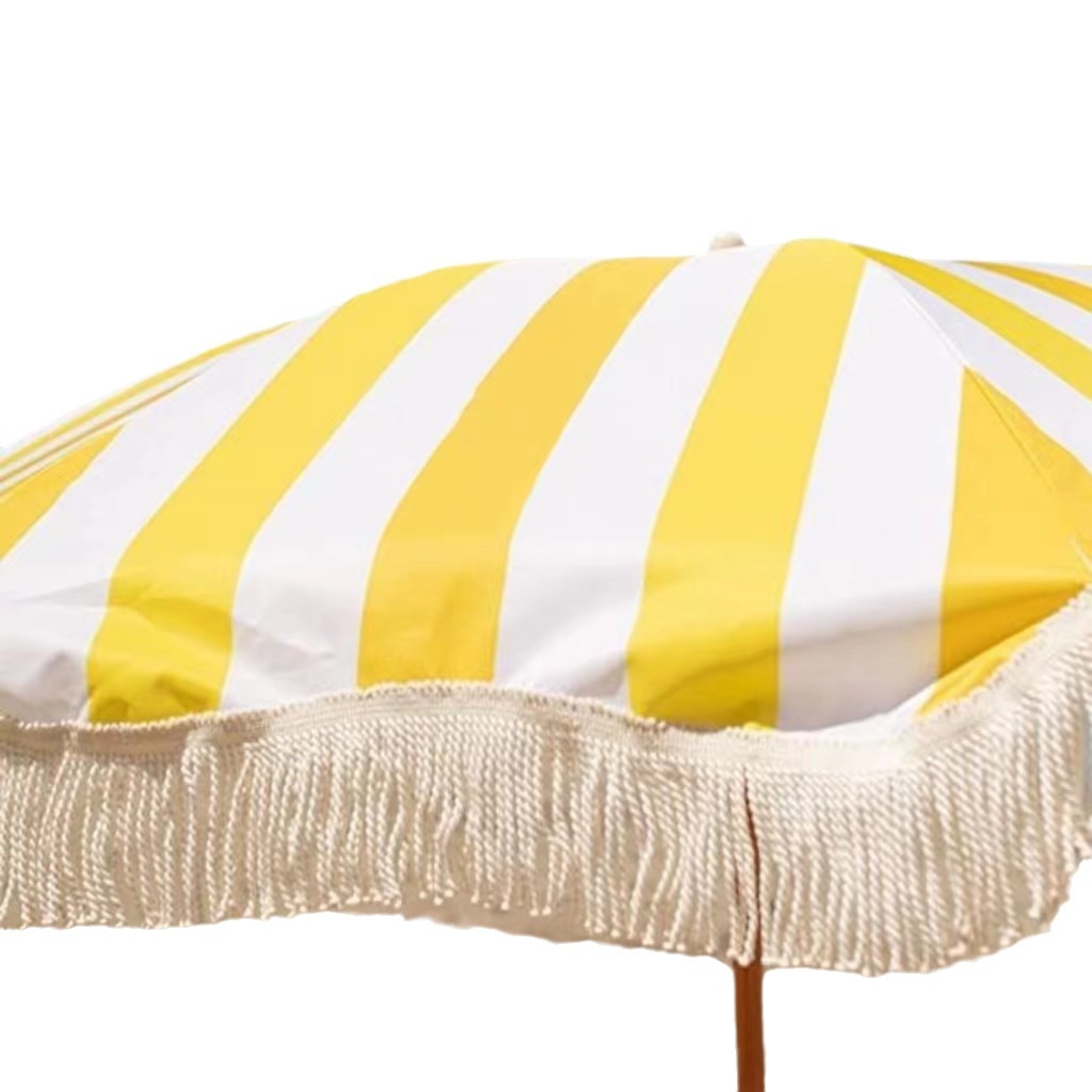 2 Meters Fiber Yellow Stripes With Tassels Outdoor Sunshade Beach Umbrella Courtyard Camping Sun Umbrella