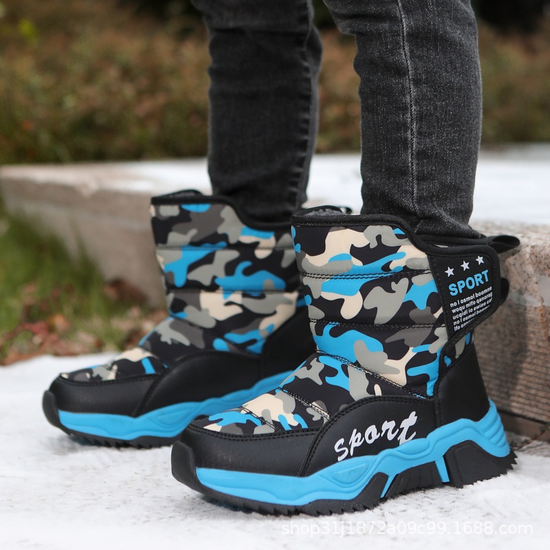 Foreign Trade Winter Children's Snow Boots For Boys And Girls Models For Middle And Large Children Thickened Camouflage Large Cotton Shoes