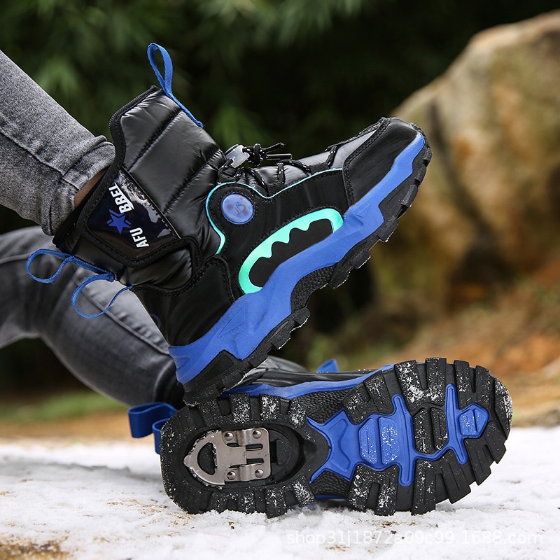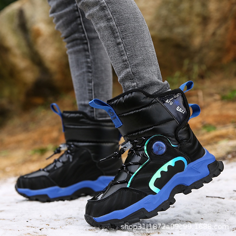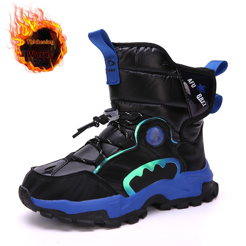 Style Children's Cotton Shoes Boys Snow Boots Winter Warm Plus Velvet Thickened Medium And Large Children Girls High Top Cotton Boots