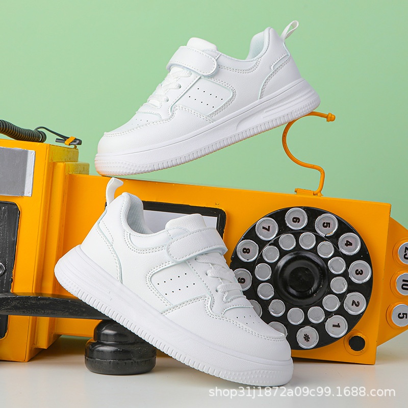 Children's White Shoes For Boys And Girls Lightweight Leather Panel Shoes Spring And Autumn Summer Children's Mesh Casual Shoes