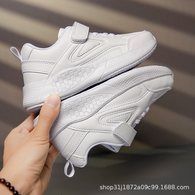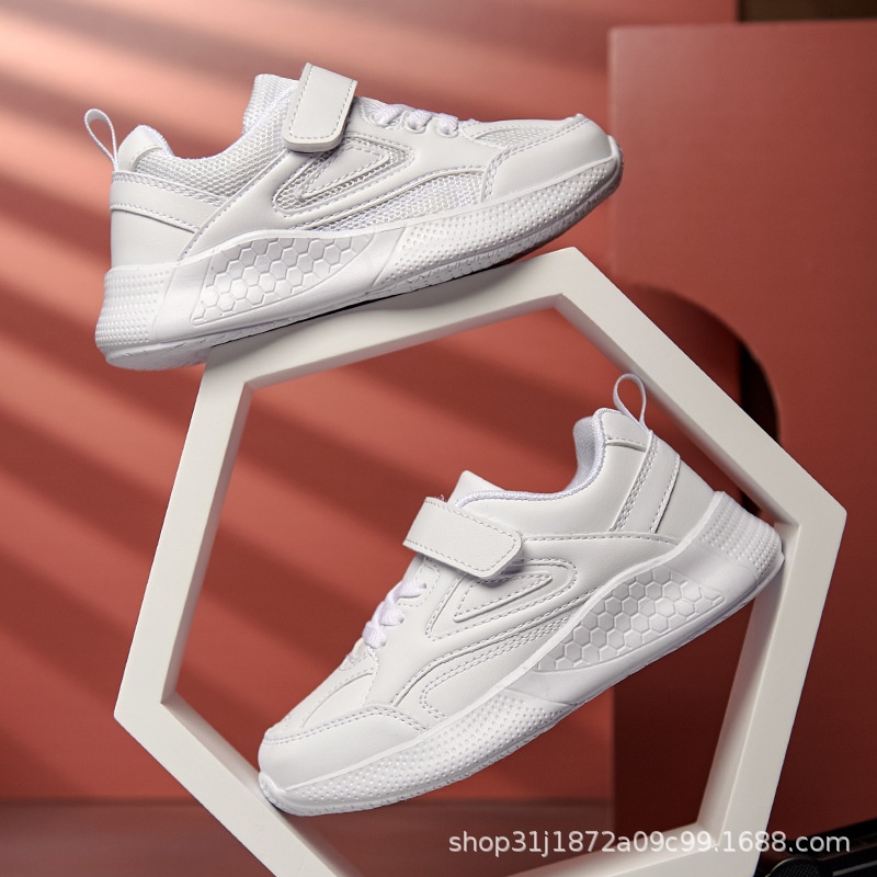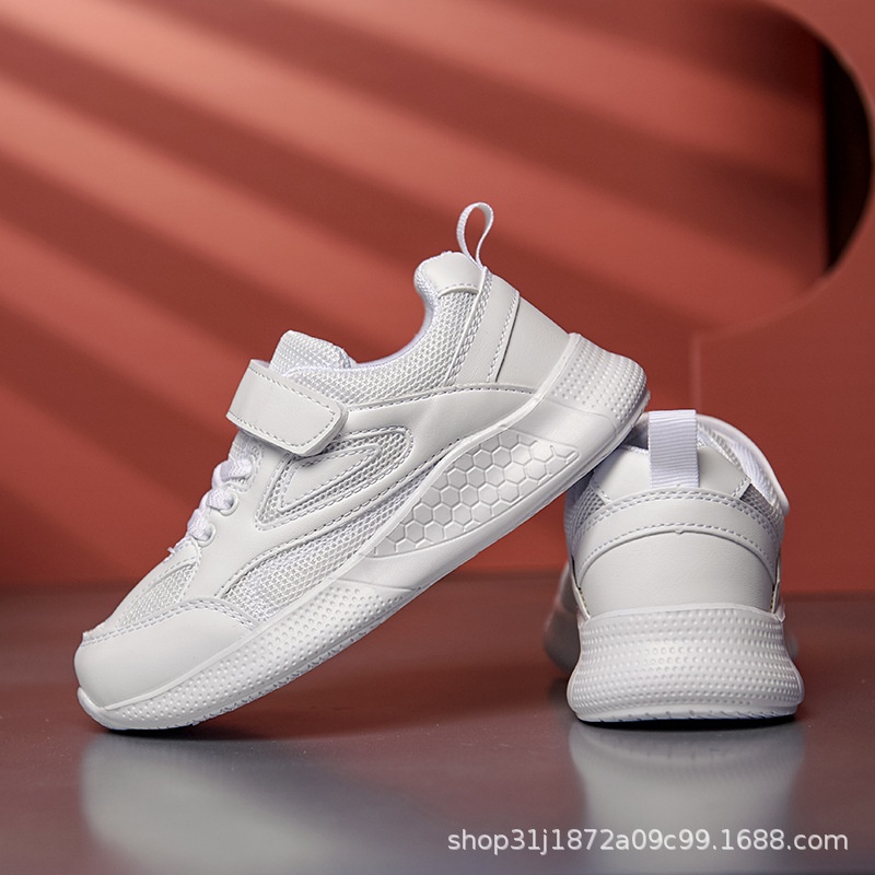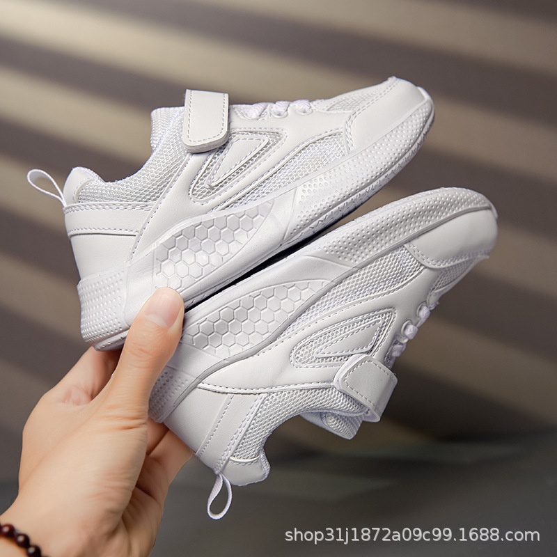 Children's Sports Shoes Pure White Leather Mesh Men And Women Autumn Lightweight Breathable Primary School Students School Shoes
