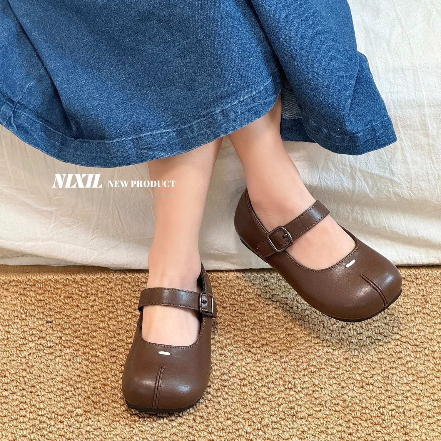 Girls Leather Shoes Spring Children's Shoes Korean Style Fashion Fake Split Toe Shallow Mouth Fashionable Girls Princess Shoes