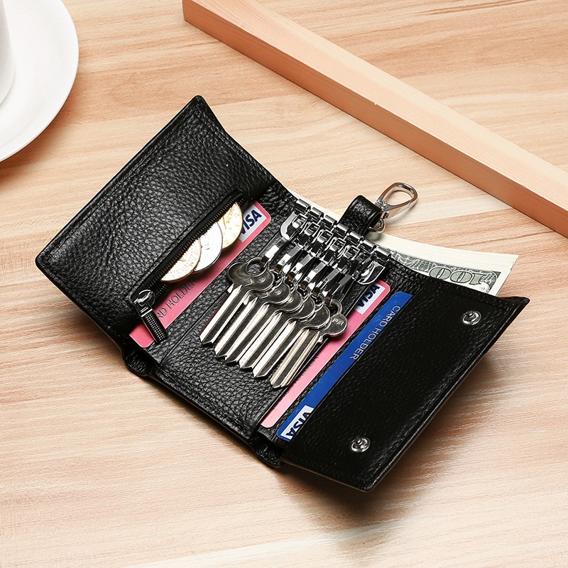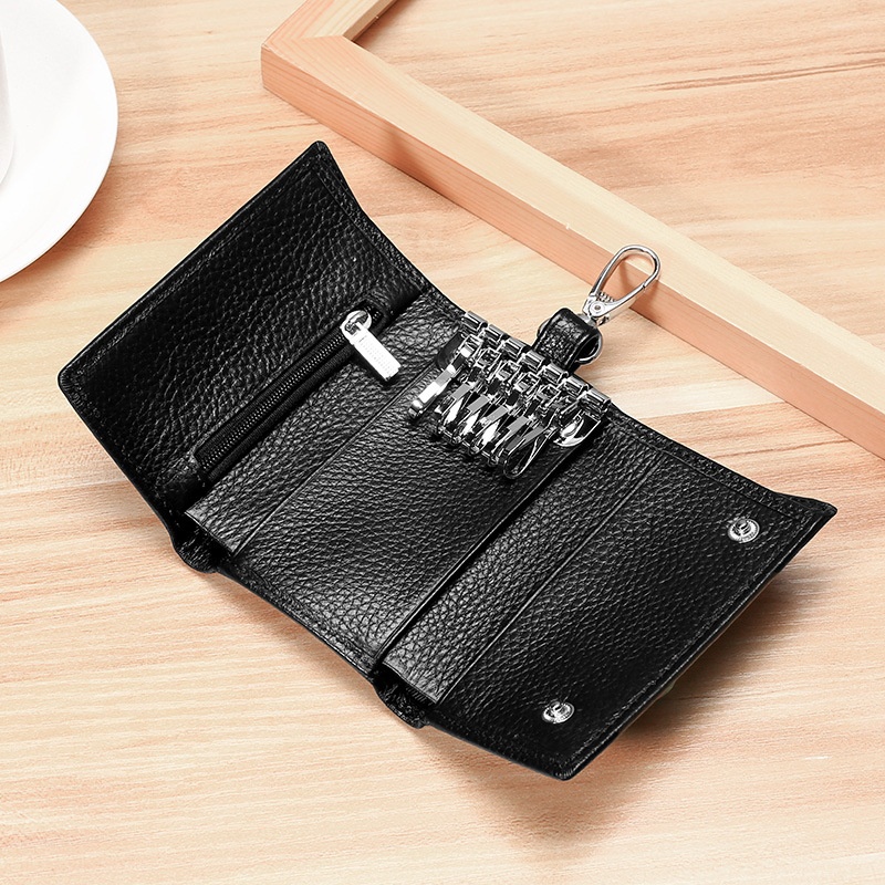 Genuine Leather Key Bag For Men And Women, Multifunctional Tri-fold Wallet, First Layer Cowhide Key Chain Bag, Fashionable Card Slot Coin Purse