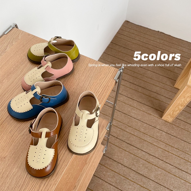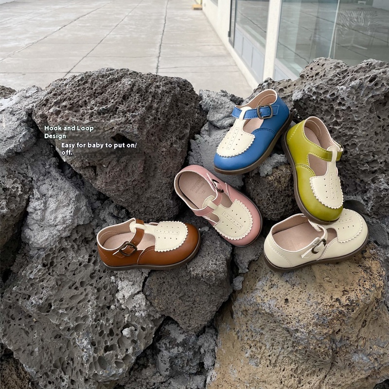 Spring Children's Leather Shoes Korean Version Of Color Matching Brogue Girls'Leather Shoes Soft Sole Kindergarten Shoes1611
