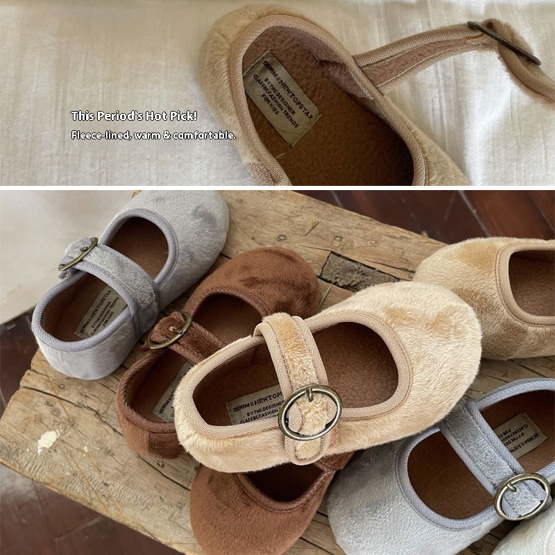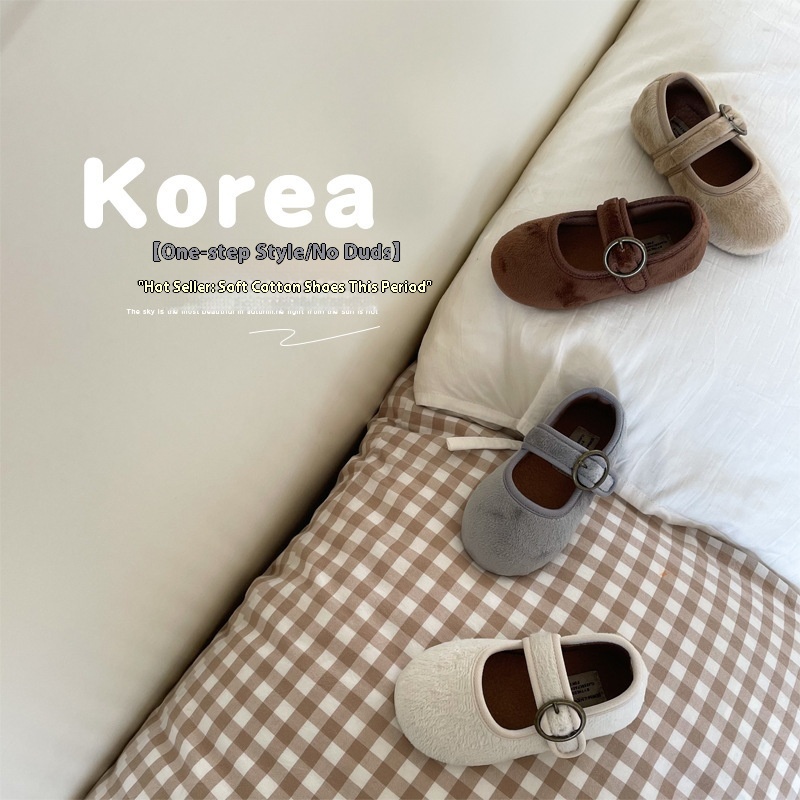 Winter Children's Cotton Shoes Korean Style Shallow Mouth Plus Velvet Grandma Shoes Soft Sole Warm Baby Shoes1305