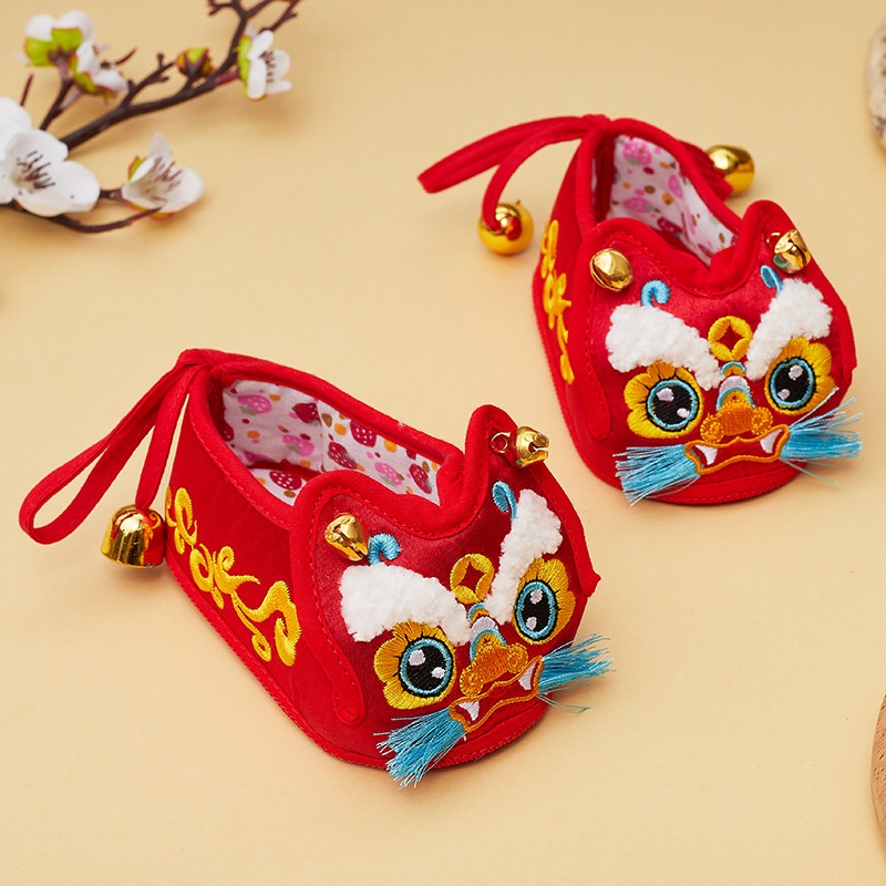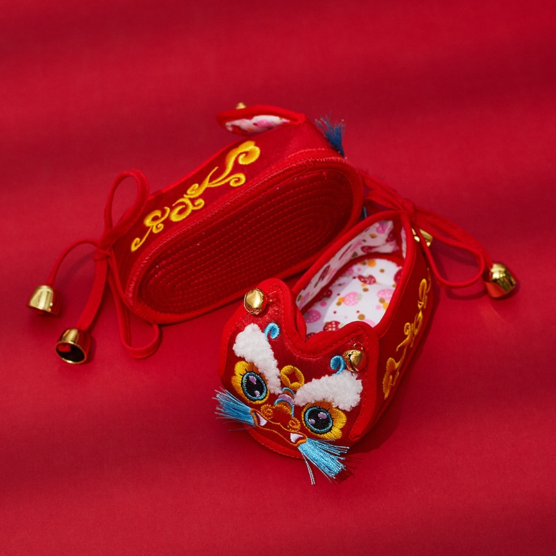 Style Auspicious Cloud Embroidery Soft Bottom Tiger Head Shoes For Men And Women Baby Pre-walking Shoes Infant Dragon Tiger Head Breathable Cloth Shoes