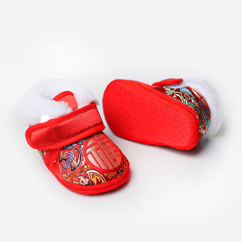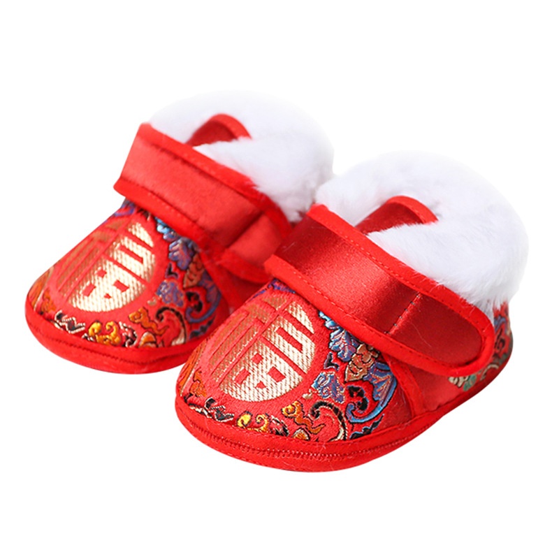 Winter Baby Tang Suit Cotton Shoes National Style One-year-old100-day Photography Folk Cloth Shoes Baby Step Pre-toddler Shoes Plus Velvet