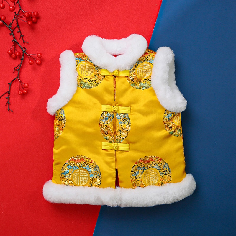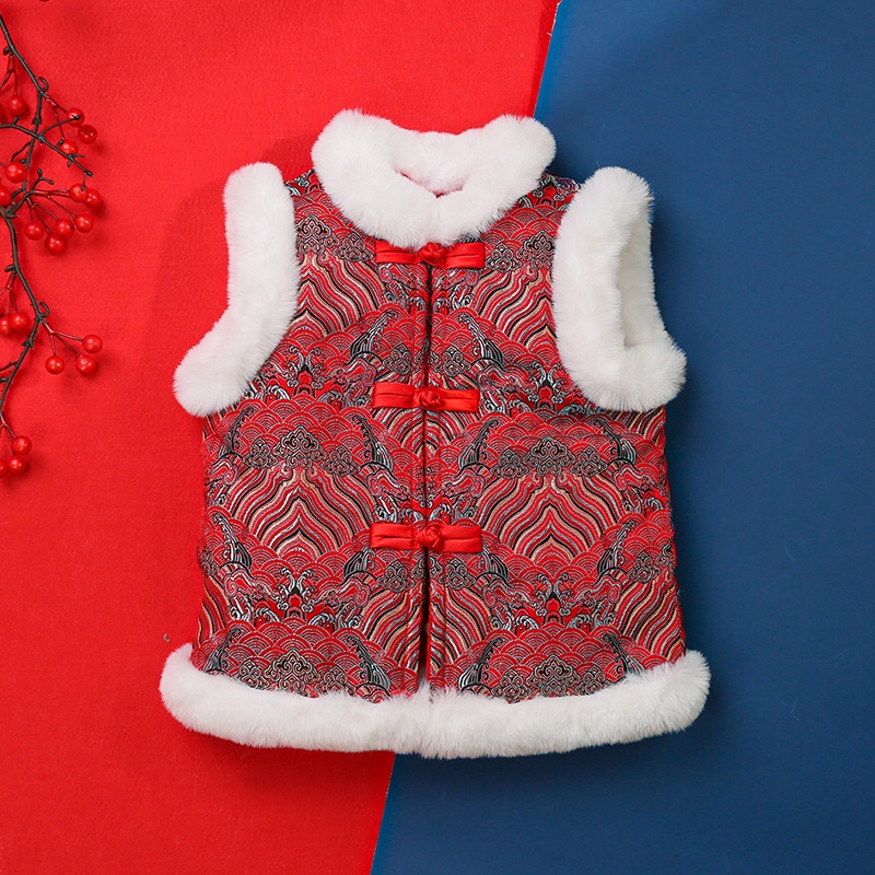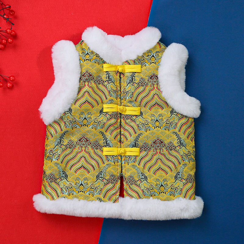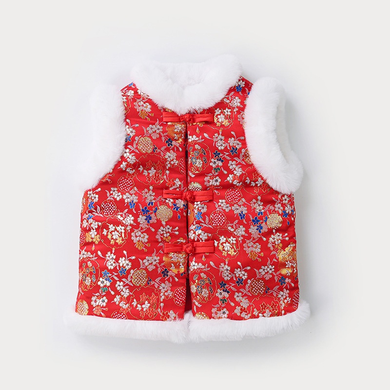 Style Satin Single-breasted Printed With National Style Characteristics And National Style.Ready-to-go Warm Vest Without Hood