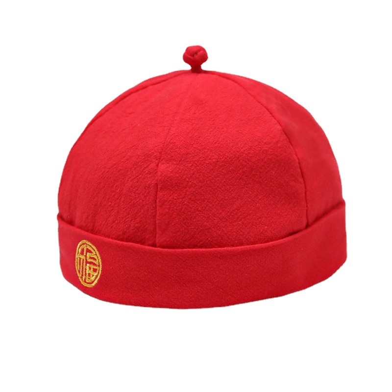 Style Brimless Melon-skin Hat For Men And Women,Baby Tang Suit Hat,Retro Landlord Hat,Hip-hop And Erotic Hat,Chinese Style Red Hat