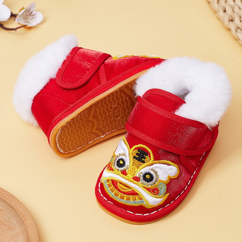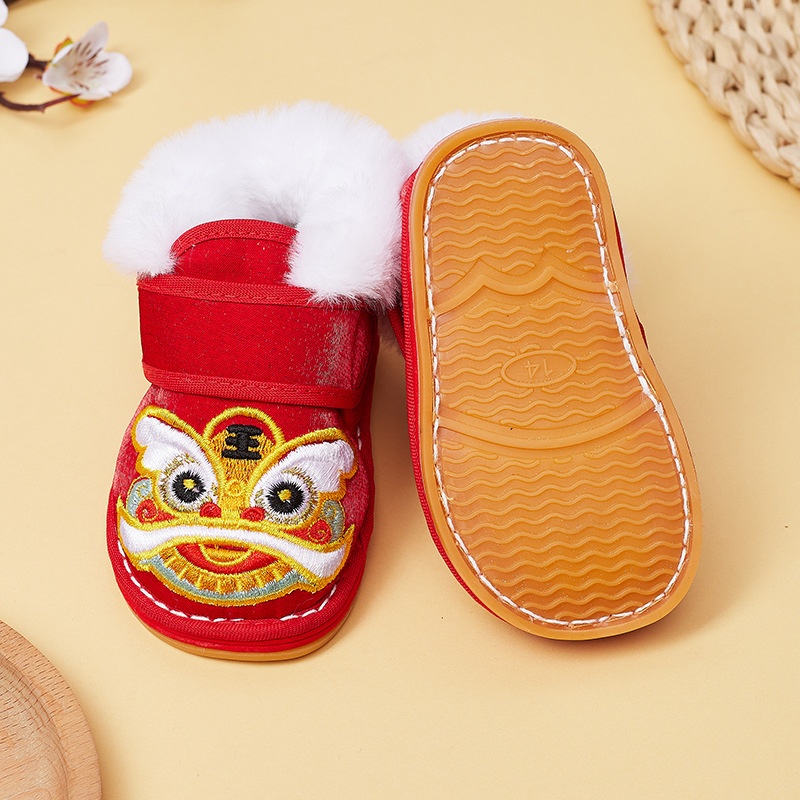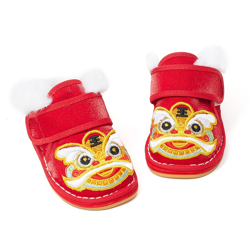 Boys And Girls Baby Lion Awakening Thousand-layer Cloth Shoes Infants And Young Children Anti-slip Warm Tiger Head Toddler Shoes Children's Tang Suit Toddler Shoes